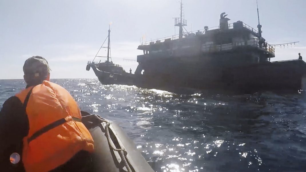 PRIMORYE TERRITORY, RUSSIA — SEPTEMBER 18, 2019: Russian border guards detain North Korean poachers in the Russian waters of the Sea of Japan. Russia’s border guard, aviation, and special tasks subdivisions have detained over 160 North Korean citizens on racketeering ships and eleven motor boats for illegal fishing and harvesting of aquatic bioresources; four Russian border guards have been injured during the operation. Video screen grab/Russian Federal Security Service/TASS -осси€. ѕриморский край. «адержание северокорейских браконьеров в российских водах японского мор€. Ѕолее 160 граждан Ќƒ- на двух рыболовных шхунах, 11 мотоботах были задержаны за незаконную добычу морских биоресурсов при участии береговой охраны, авиации и подразделений специального назначени€. ѕри задержании четверо российских пограничников получили ранени€. —нимок с видео/÷ќ— ‘—Ѕ -‘/"ј——