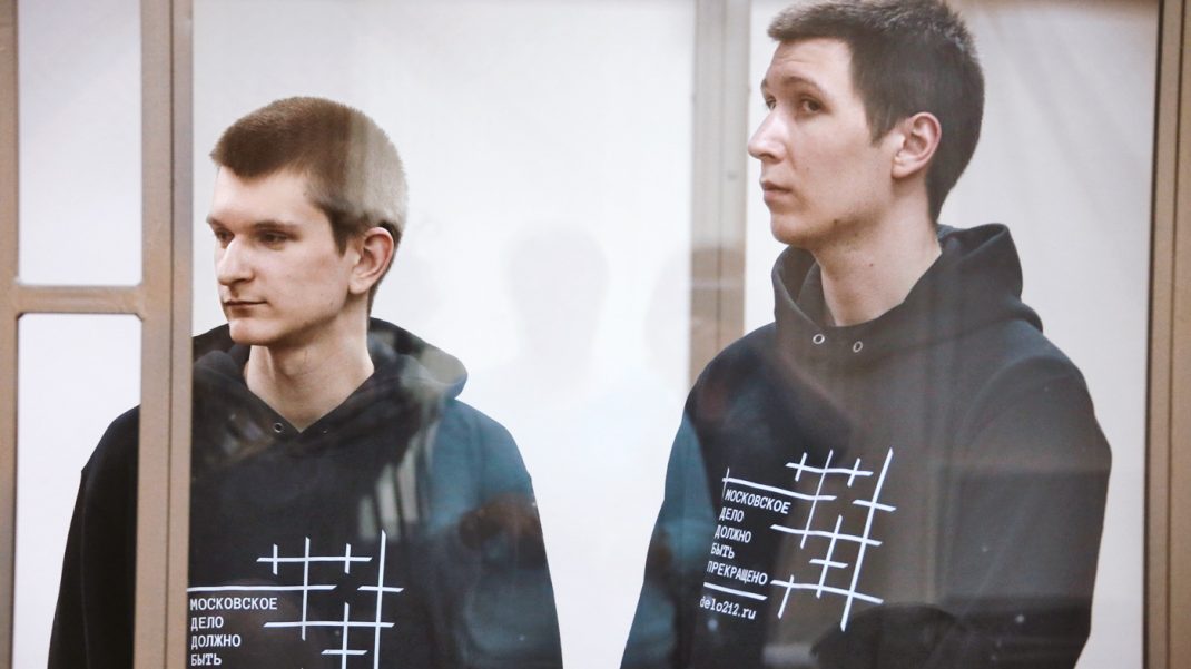 Осужденные по делу о «Telegram-революции» Владислав Мордасов (справа) и Ян Сидоров (слева) во время заседания Южного военного суда. Фото: Василий Дерюгин / Коммерсантъ