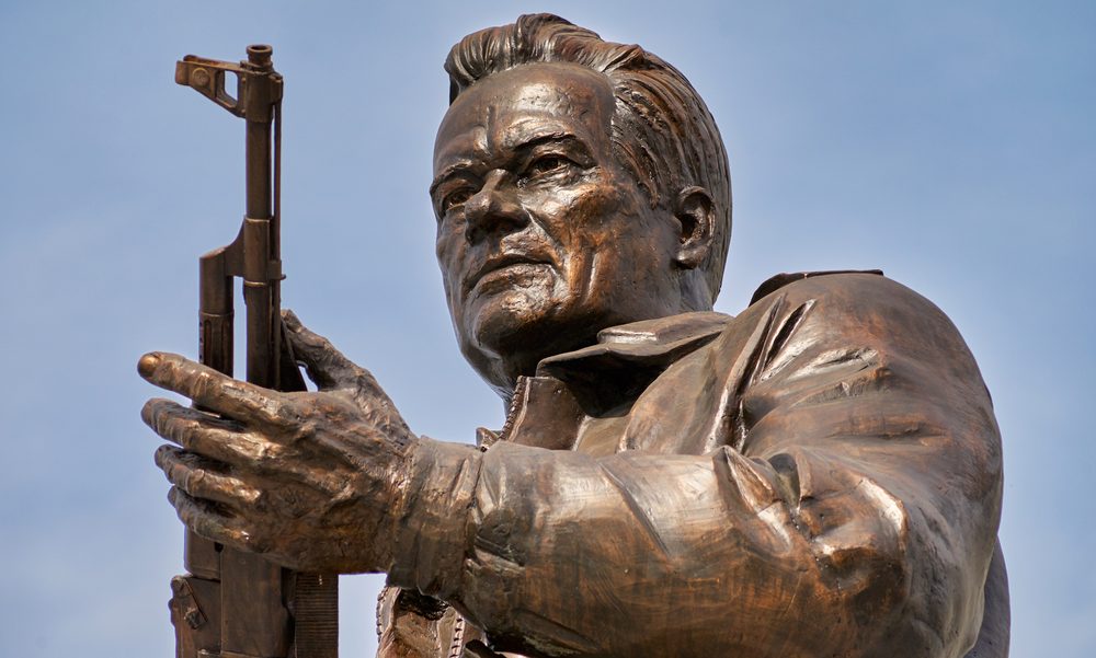 MOSCOW, RUSSIA/SEPTEMBER 20,2017: Monument to the designer Mikhail Kalashnikov, the creator of the Kalashnikov assault rifle