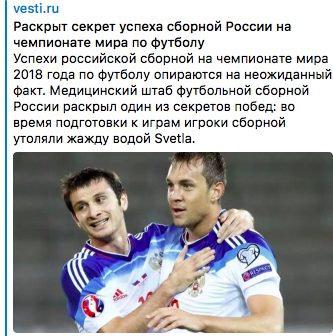 Сегодня к 13.00 статья про помогавшую сборной воду исчезла с сайта «Вести.ру».