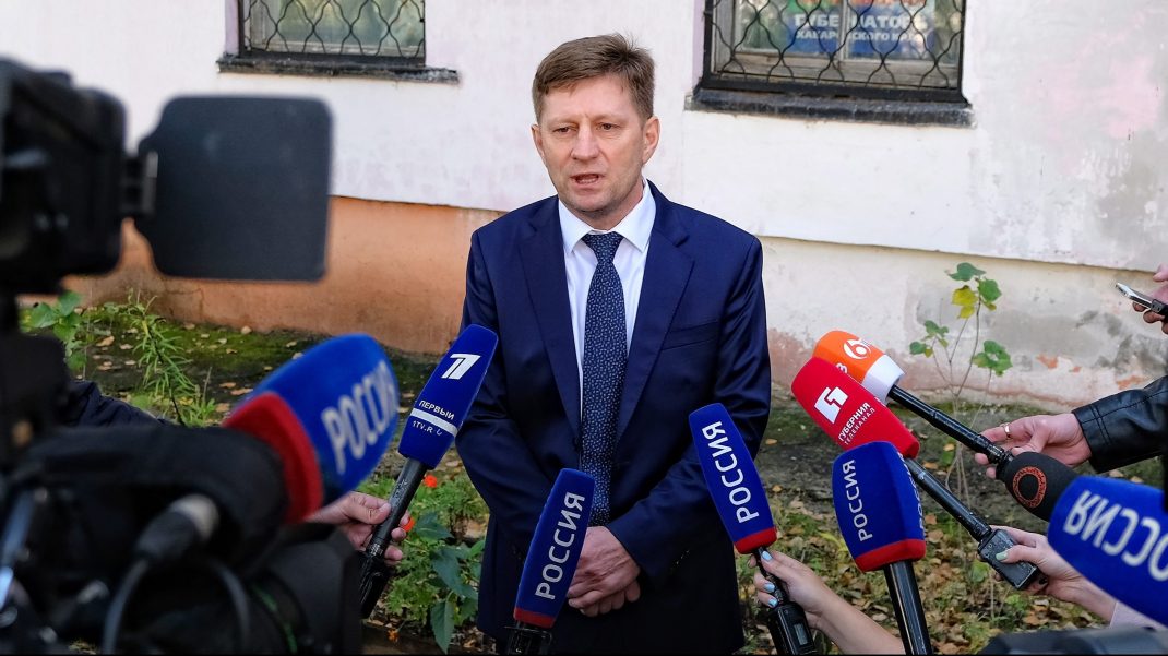 KHABAROVSK, RUSSIA — SEPTEMBER 23, 2018: Russian Liberal Democratic Party candidate Sergei Furgal gives an interview on voting in the second round of the 2018 Russian gubernatorial election in the Khabarovsk Territory. Dmitry Morgulis/TASS Ðîññèÿ. Õàáàðîâñê. Êàíäèäàò íà ïîñò ãóáåðíàòîðà Õàáàðîâñêîãî êðàÿ îò ËÄÏÐ Ñåðãåé Ôóðãàë ïîñëå ãîëîñîâàíèÿ íà èçáèðàòåëüíîì ó÷àñòêå ¹122. 23 ñåíòÿáðÿ âî Âëàäèìèðñêîé îáëàñòè è Õàáàðîâñêîì êðàå ïðîõîäÿò âòîðûå òóðû ãóáåðíàòîðñêèõ âûáîðîâ. Äìèòðèé Ìîðãóëèñ/ÒÀÑÑ
