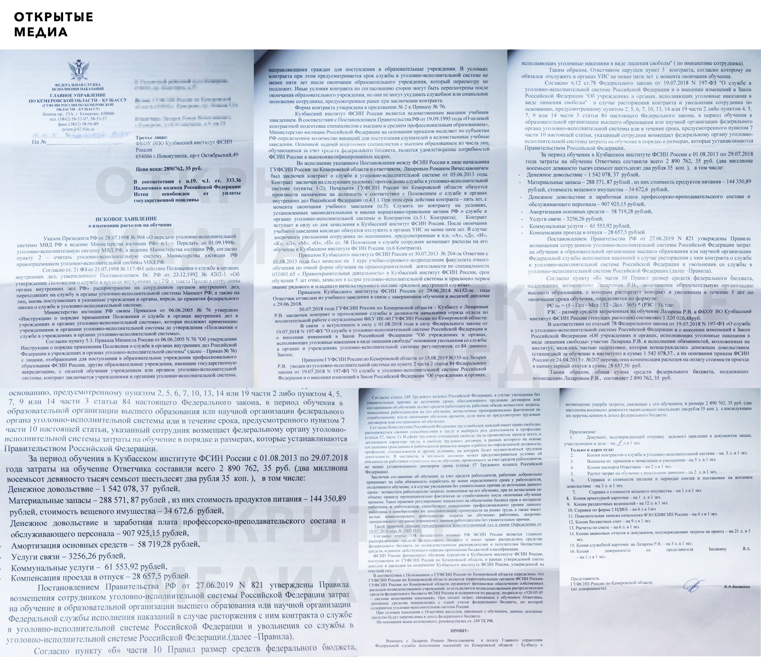 Это подтверждают и документы, опубликованные в группе «Союз сотрудников ФСИН» во «Вконтакте»: официальные ответы из двух академий во Владимире и Рязани, а также управления кадров Федеральной службы исполнения наказаний на запрос правозащитницы Евгении Мальцевой. Служба утверждает, что действует в соответствии с нынешним законодательством, которое позволяет ей включать в размер компенсации стоимости обучения зарплаты преподавателей, а также понесённые вузом затраты на коммунальные услуги, учебное оборудование, услуги связи и другие расходы.