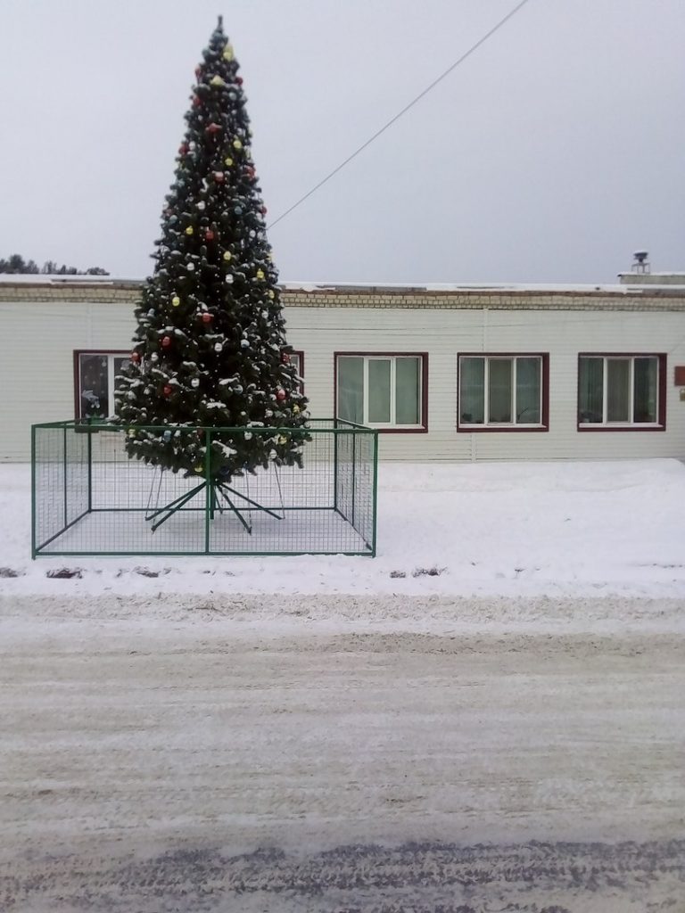 Глава тюменского посёлка огородил ёлку от ворующих игрушки собак