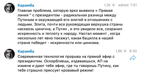 В первой записи Габрелянов прокомментировал выступление Владимира Путина на «Прямой линии» 20 июня.