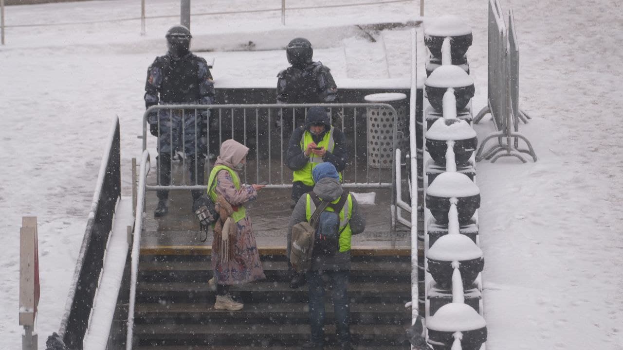 10:05. В переходе с Китай-города стоят журналисты в характерных жёлтых жилетах: полицейские не дают им выйти на улицу в парк. Выбраться из перехода представителям прессы удалось только на другой стороне улицы.Фото: «Открытые медиа»10:03. В Москве недалеко от Красной площади тоже много сотрудников силовых структур и ни одного праздного пешехода, передаёт корреспондент «Открытых медиа».