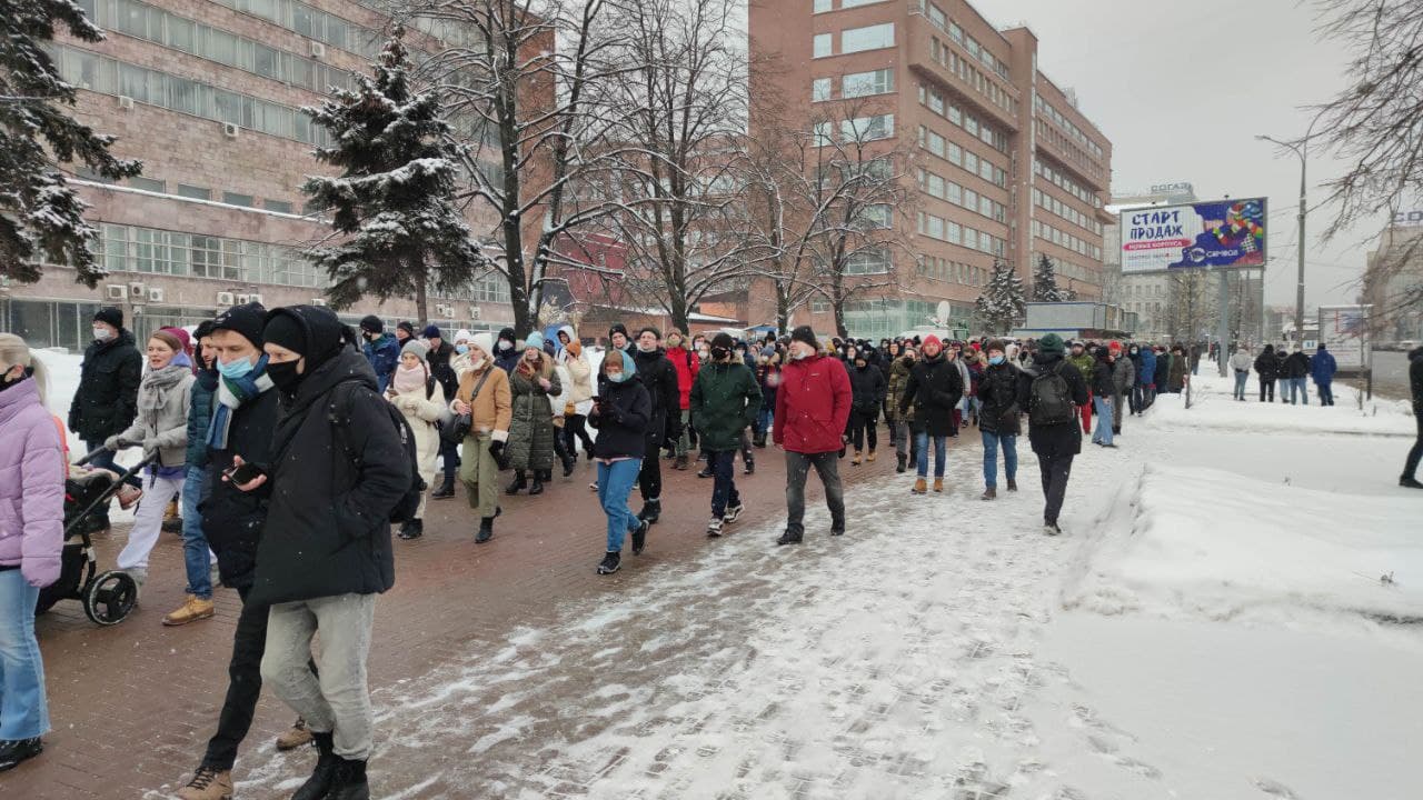 13:49. Протестующие в Москве направляются мимо закрытой станции метро «Красносельская» к Сокольникам. Недалеко оттуда находится СИЗО «Матросская тишина», где содержится Алексей Навальный.