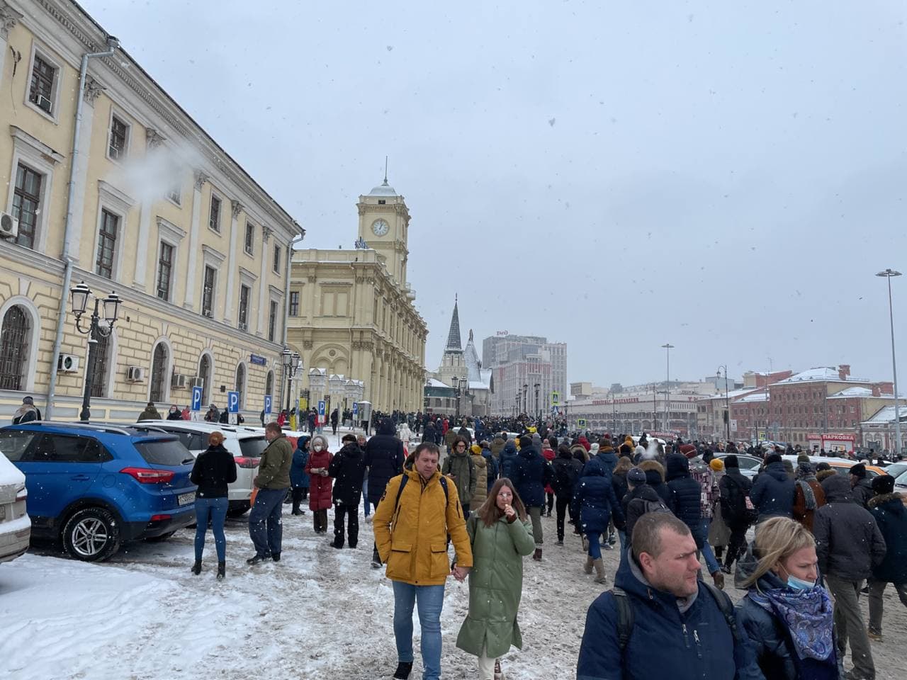 12:55. Проход к площади трёх вокзалов тем временем перекрывает ОМОН и автозаки.Фото: «Открытые медиа»В толпе — около 2000 человек, сообщает корреспондент ОМ.Фото: «Открытые медиа»12:53. В Telegram-канале «ЗаТелеком» директора «Общества защиты интернета» Михаила Климарева в свою очередь пишут, что уличные камеры во многих российских городах, которые должны фиксировать протесты 31 января, сегодня не работают. Провайдеры, по информации Климарева, в частности выключили камеры в Бийске, Уфе и на Алтае.