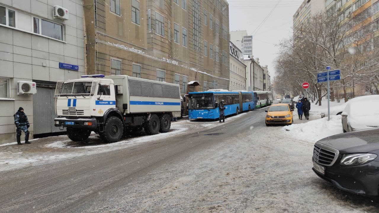 13:13. Во дворах проспекта Сахарова стоят резервные силы Росгвардии, сообщает корреспондент ОМ.Фото: «Открытые медиа»13:12. В Москве одна из участниц акции принесла с собой ёршик.