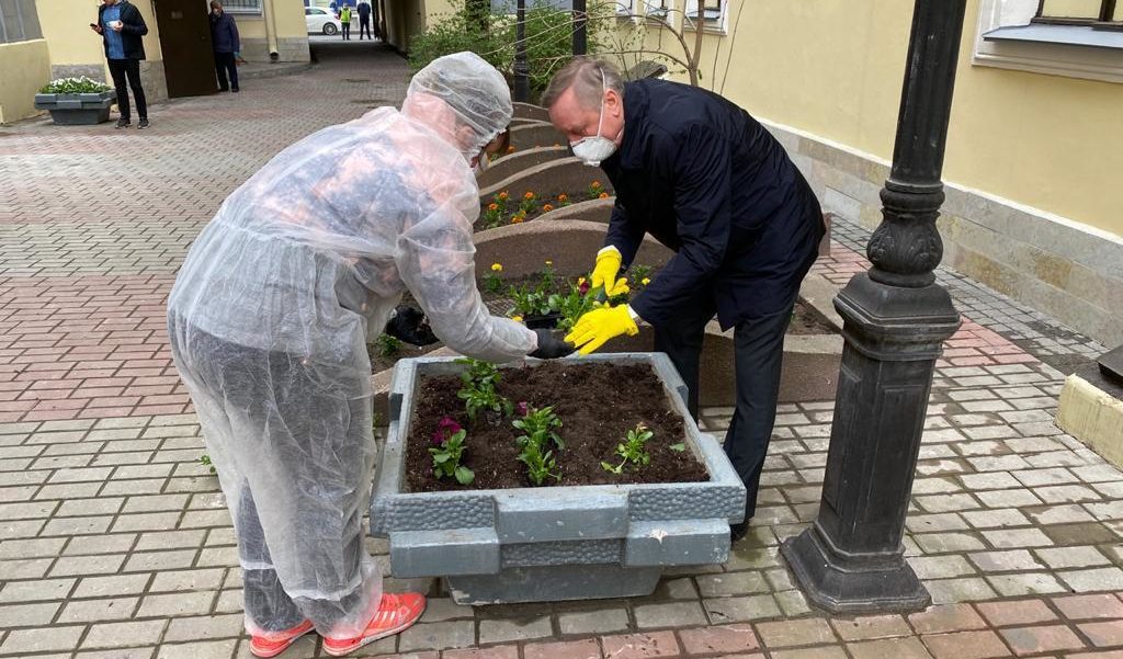 Губернатор Петербурга посетил роддом со щитком поверх респиратора. С ним начали делать мемы