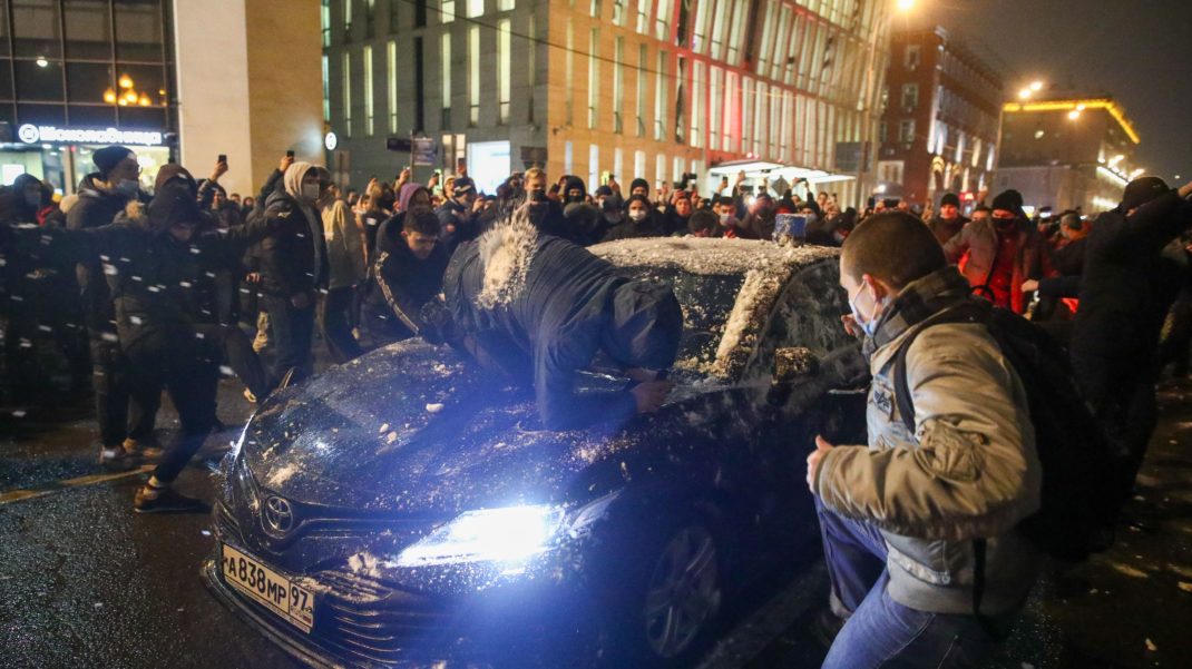 Во время акции протеста в Москве протестующие на Цветном бульваре закидали снежками автомобиль с мигалкой. Источник «РИА Новости» сообщил, что водитель автомобиля госпитализирован, ему якобы выбили глаз. ТАСС тоже со ссылкой на источник написал, что автомобиль принадлежит ФСБ и что водитель получил «травму глаза».