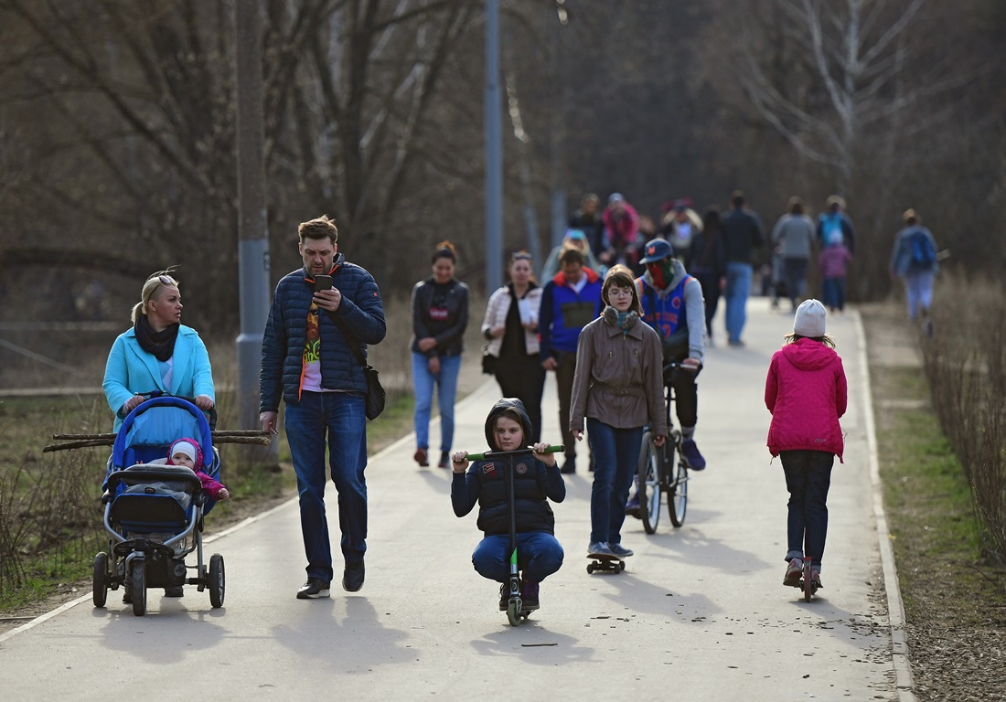 Люди в парке Москвы 28 марта, в первый день нерабочей недели Фото: Игорь Иванко/Коммерсантъ