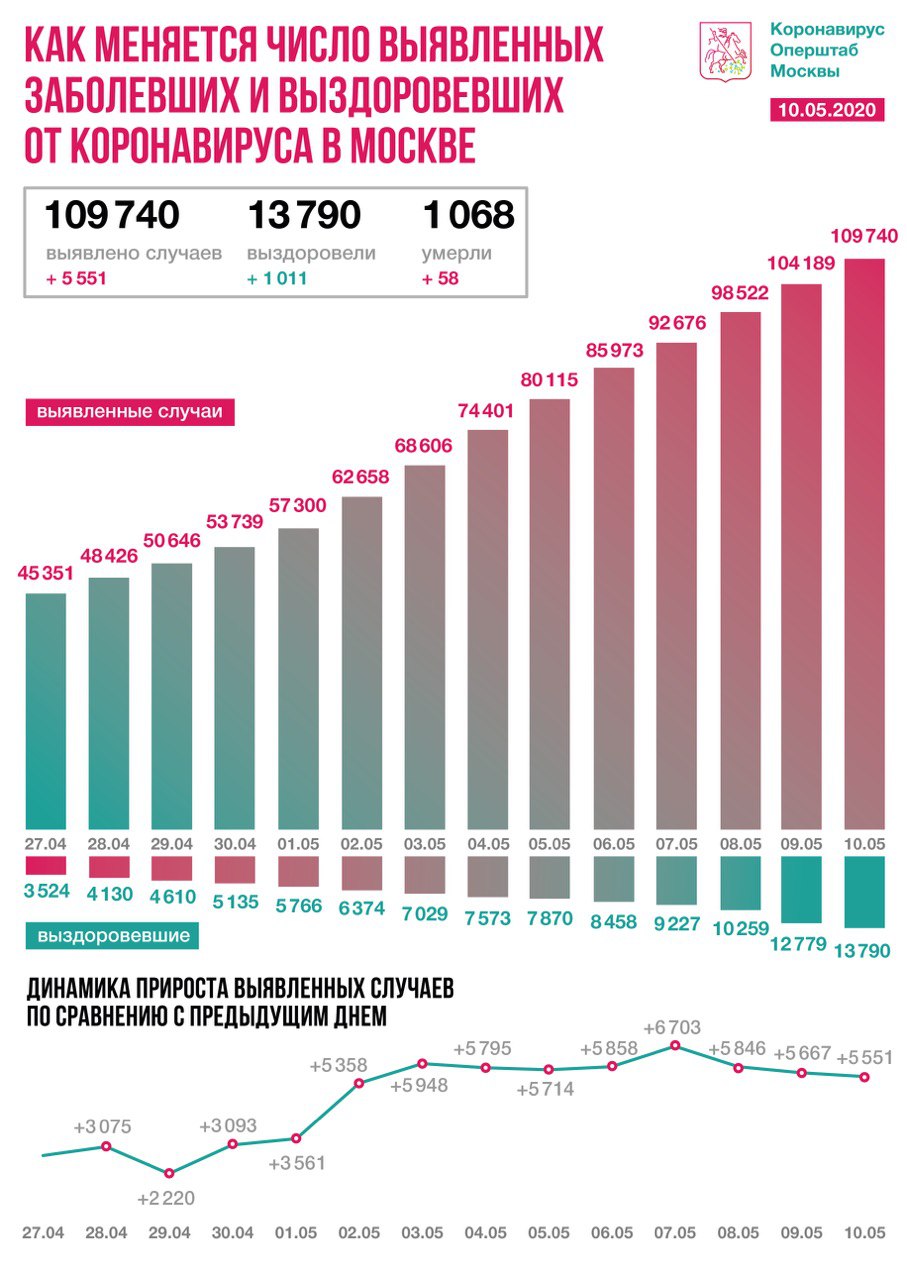 Несмотря на то, что Москва и так остаётся лидером по числу заражённых коронавирусом в России (почти 110 тыс. больных с начала пандемии), мэр столицы Сергей Собянин обращал внимание на то, что реальное число заразившихся инфекцией в городе составляет порядка 300 тыс. человек — это 2-2,5% от всего населения города.