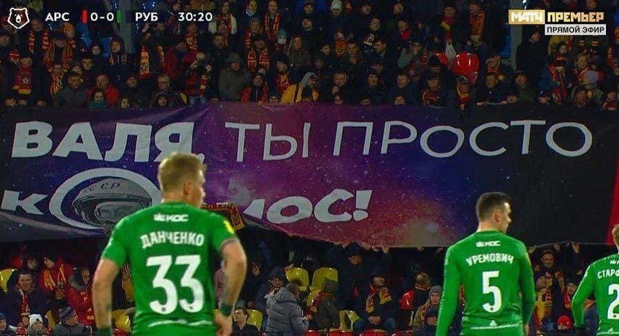 Речь идет об игре «Арсенала» против «Рубина» (0:1) в рамках 22-го тура российской футбольной премьер-лиги, она прошла в воскресенье, 15 марта. Во время матча на трибунах появились два баннера про Терешкову. На одном из них была надпись «Валя, ты просто космос».