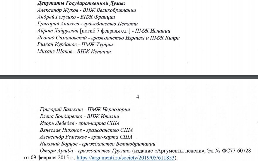 В России иметь иностранное гражданство или ВНЖ депутатам и чиновникам нельзя с 2006 года, в противном случае их полномочия должны быть досрочно прекращены. Аналогичная норма закреплена в новой «путинской» Конституции. В апреле Володин предложил проверить Парфёнова, который критиковал работу Госдумы, на наличие американского гражданства из-за того, что депутат очень часто и много пишет в американских соцсетях вроде Facebook и Twitter. В ответ на это в своём запросе Парфёнов отмечает, что у нижней палаты парламента также есть страницы в тех же американских соцсетях.
