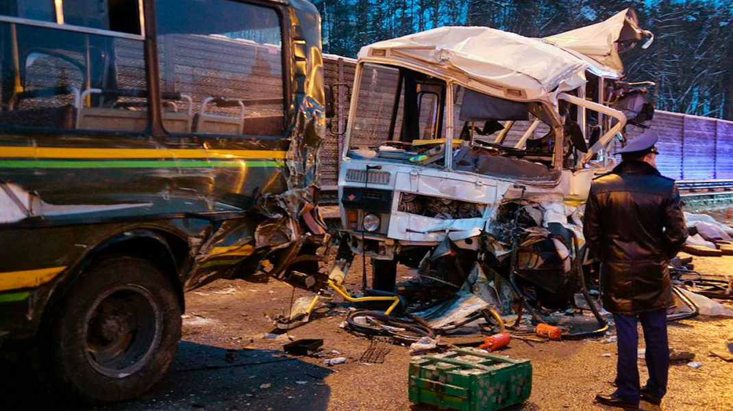 Грузовик протаранил колонну автобусов Минобороны в Подмосковье. Погибли четверо военных