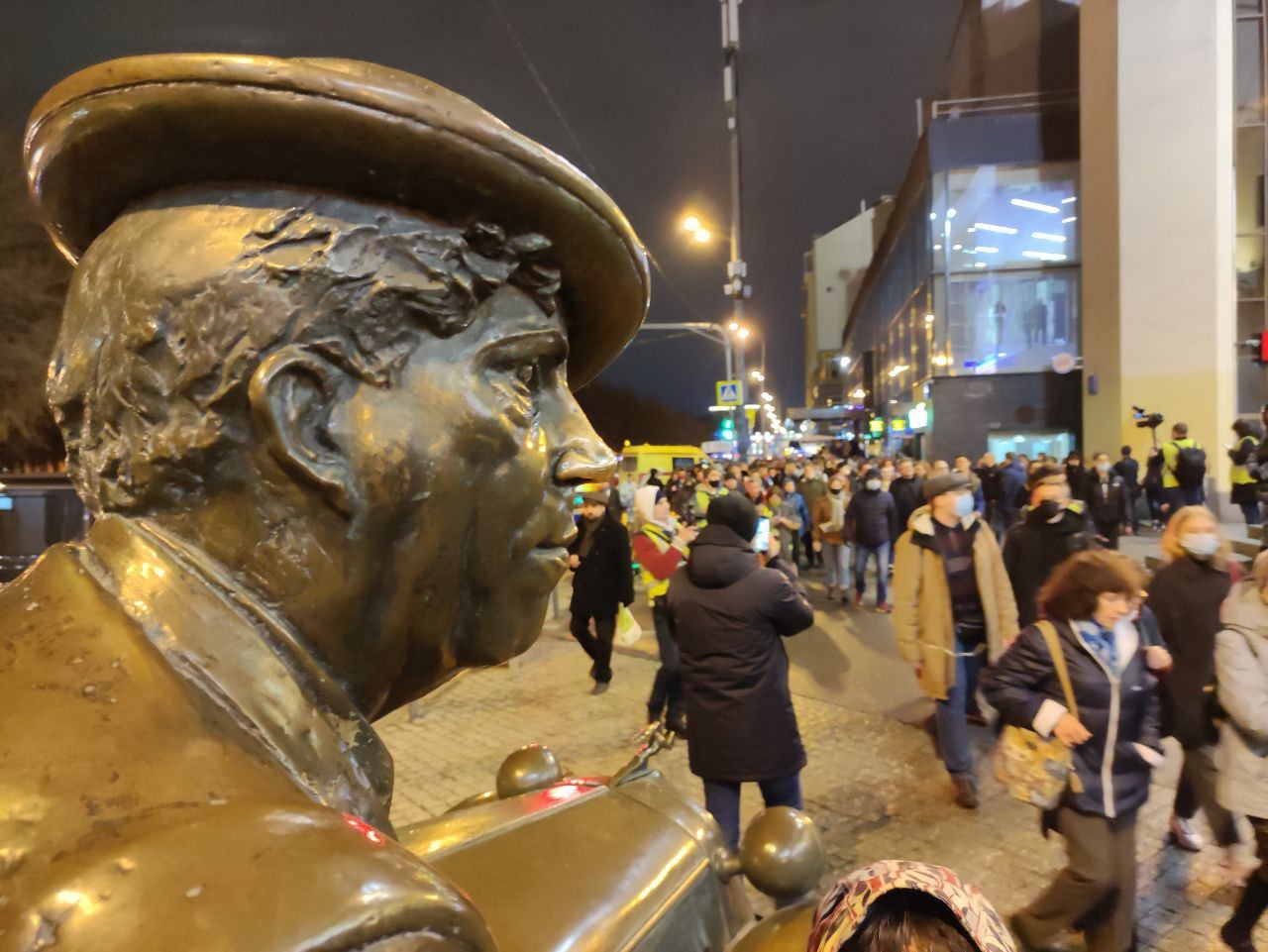 22:13. В Москве акция близится к завершению, протестующие разделились на несколько небольших групп. Часть ушла гулять по Садовому кольцу, другая, как сообщает Znak.com, дошла до Пушкинской площади, которая с начала митинга была перекрыта силовиками. «Автозак LIVE» сообщает, что протестующие на Трубной площади продолжают кричать «Свободу!»