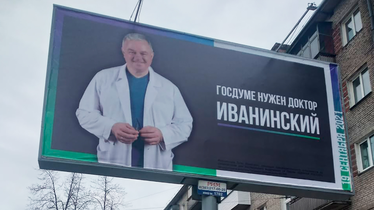 Депутат законодательного собрания Новосибирска и главврач городского онкодиспансера Олег Иванинский разместил на улицах города агитационные баннеры с надписью «Госдуме нужен доктор». То, что он единоросс, он указывать не стал, обратило внимание издание «Тайга.инфо».