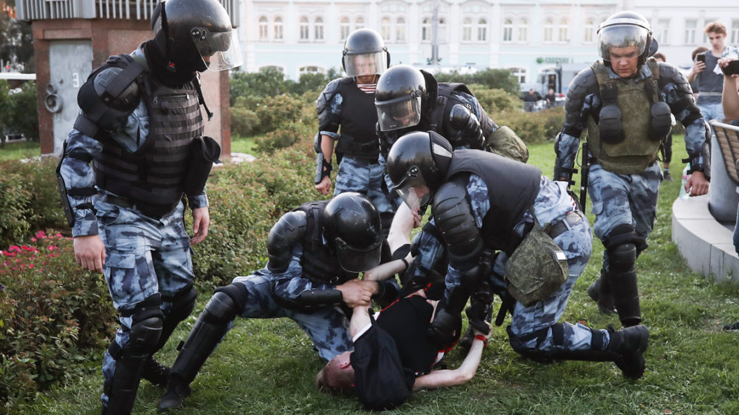 Задержание участника акции оппозиции в поддержку незарегистрированных кандидатов на выборах в Мосгордуму на Трубной площади 27. июля 2019 года. Фото: Валерий Шарифулин / ТАСС