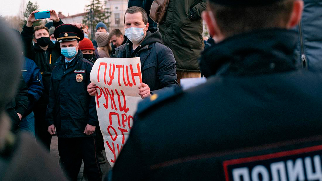 Массовые акции протеста в поддержку Навального состоялись в десятках городов России 21 апреля. С властями ни одна из них согласована не была. По подсчётам полиции, в Москве в акции принимали участие порядка 6000 человек, в Санкт-Петербурге — 4500. «ОВД-Инфо» сообщило о задержании во время протестов почти 1800 человек, больше всего — в Петербурге. Судя по видео изданий «Фонтанка» и «Бумага», там силовики действовали в отношении протестующих жёстко, применяя в том числе электрошокеры.