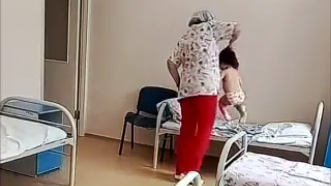 Видеозапись, о которой идёт речь, появилась в Instagram-канале под названием «Очевидец Новосибирск» 6 ноября. Сначала на видео без присмотра бегают и смеются дети 3−4 лет. Один ребёнок выбегает из палаты, и спустя некоторое время обратно за волосы его возвращает женщина в медицинской маске и шапочке. Ребёнка она позже поднимает за волосы и швыряет на кровать. Малыш укладывается, женщина отчитывает его, а затем накрывает покрывалом.