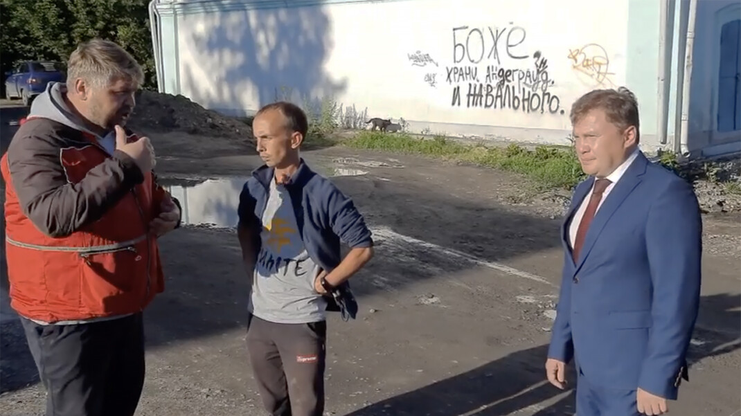 Мэр Камышлова Алексей Половников (справа). Скриншот: Владислав Постников / Facebook