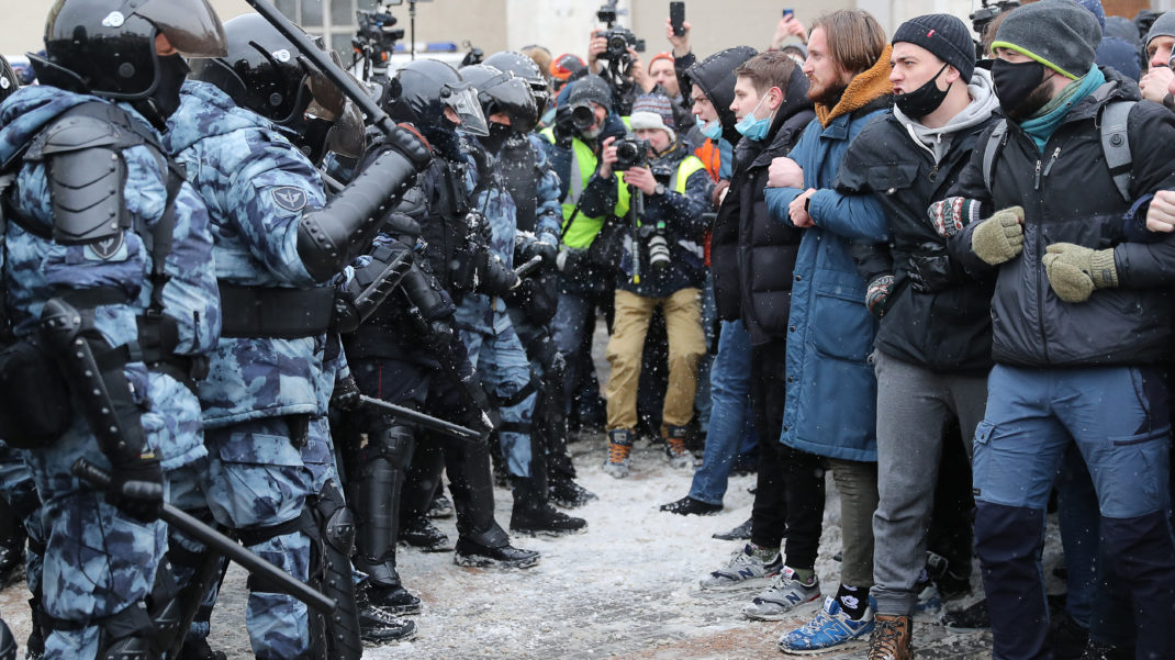 31 января в более чем 100 российских городах прошли акции в поддержку Алексея Навального. Политика арестовали на 30 суток из-за обвинений в нарушении обязательств условного срока по делу «Ив Роше» от 2014 года. По данным «ОВД-Инфо», на митингах по всей стране задержали 4567 человек: больше всего задержаний в Москве (1450), Петербурге (997) и Красноярске (194). В Москве на акцию вышла и супруга Алексея Навального Юлия. Её почти сразу же задержали силовики в районе «Сокольников», в ОВД Щербинки (Новая Москва), где она провела более трёх часов, на неё составили протокол о нарушении правил проведения митинга (ст. 20.2 КоАП). В Петербурге также уже возбудили первое уголовное дело о насилии в отношении сотрудника Росгвардии.