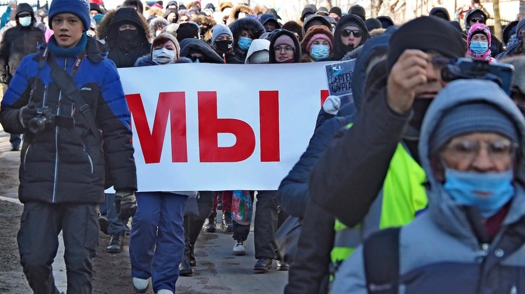 Жители Хабаровска 22-ю субботу подряд вышли на акцию в поддержку арестованного экс-губернатора Сергея Фургала. Об этом пишет Dvhab.ru, видеотрансляцию вёл местный штаб оппозиционера Алексея Навального.