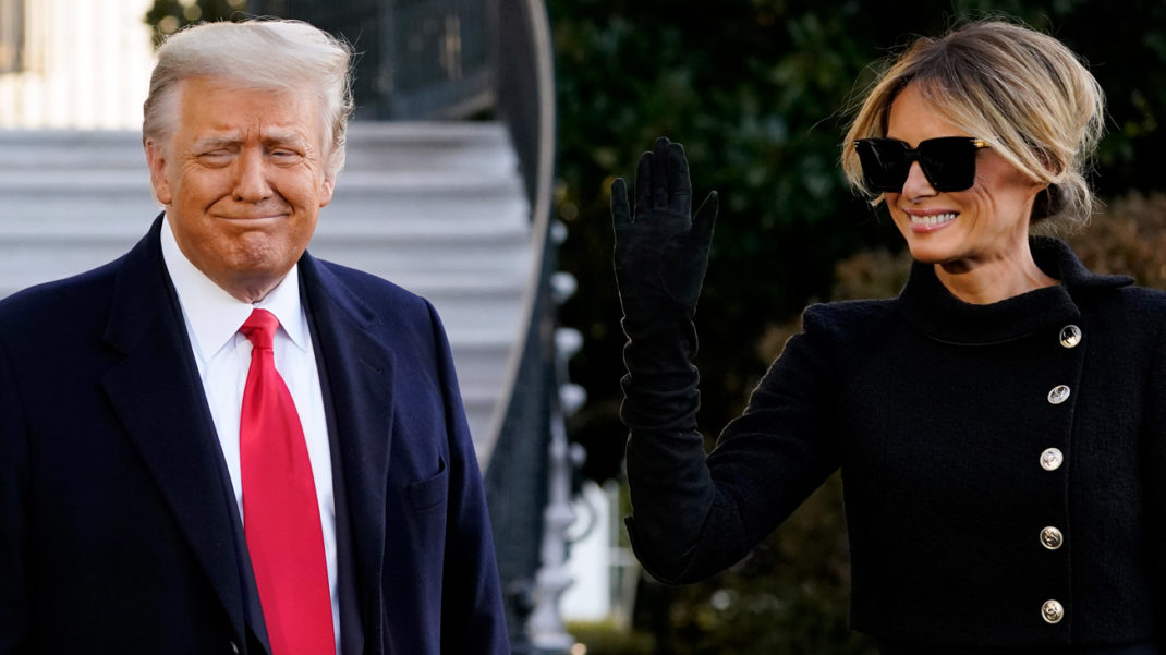 На фото, сделанных у Белого дома, видно, Меланья выбрала для прощания чёрный костюм. «Мы каким-нибудь образом ещё вернёмся сюда», — заявил Трамп перед тем, как покинуть Вашингтон.