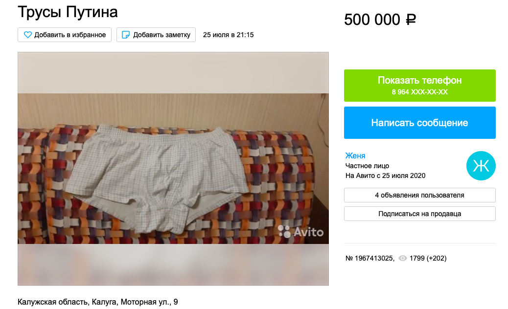 После этого на «Авито» в продаже стали появляться десятки товаров, якобы связанных Путиным.