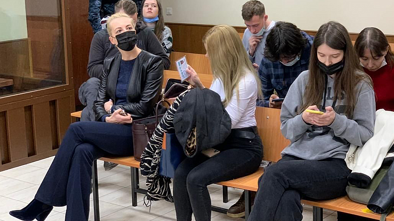 13:17. Юлия Навальная говорит мужу «я пойду» и уходит из зала, не дожидаясь решения суда.