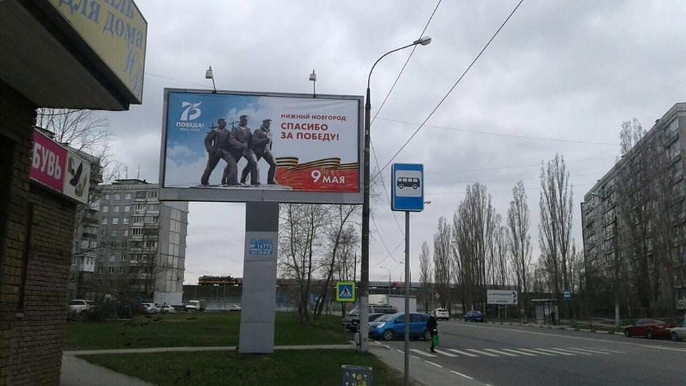 В Нижнем Новгороде установили баннеры ко Дню Победы, на которых вместо героев Великой Отечественной войны были изображены герои Гражданской войны. Первой внимание на это первой обратила местная жительница, экскурсовод Виктория Азарова, сообщается в паблике «Типичный Нижний Новгород» во «ВКонтакте», на него ссылаются несколько местных изданий, в том числе портал «В городе N».