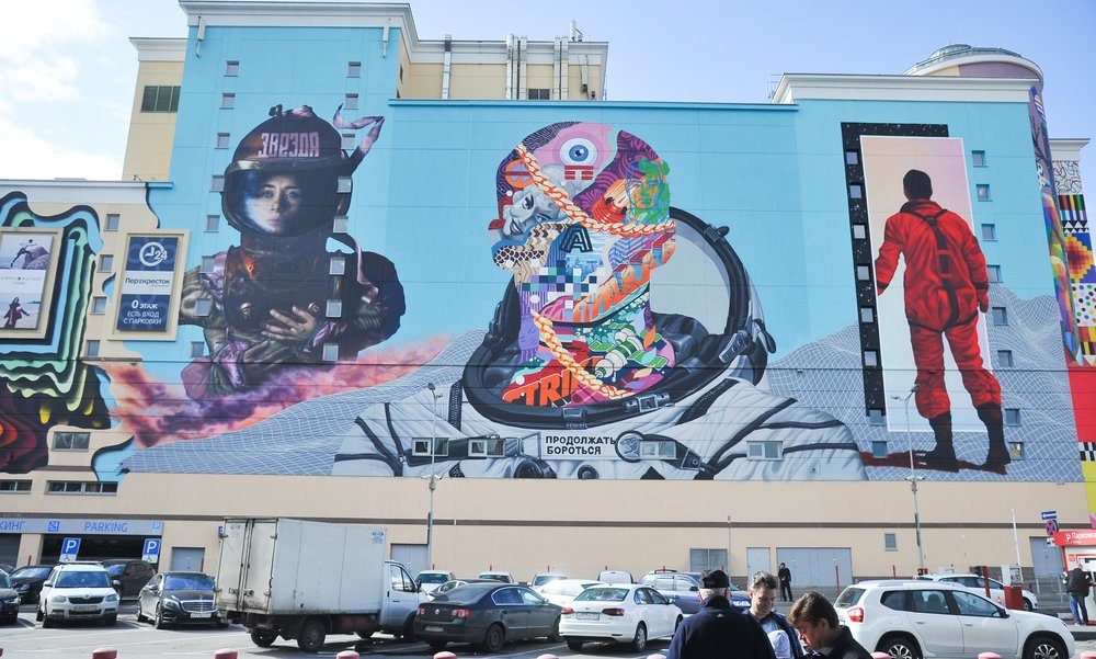 Рисунки художников-граффитистов на стенах ТЦ «Атриум». Фото: Александр Авилов / АГН «Москва»
