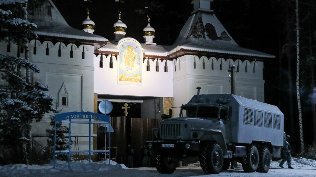 Экс-схимонаха задержали в захваченном им Среднеуральском монастыре в Свердловской области ночь на вторник. Прихожане сообщали, что монастырь заранее окружили по периметру сотрудники ОМОНа и Росгвардии. Перед задержанием Сергия между его сторонниками и силовиками произошла потасовка; у одной из монахинь диагностировали перелом шейки бедра. По словам адвоката экс-схигумена, в итоге было «задержано много людей» — священников и прихожан. По данным источника ТАСС, причиной Сергия задержания стал видеоролик, размещенный на YouTube, в котором он призывает своих сторонников «умереть за Россию». В обители прошли обыски.