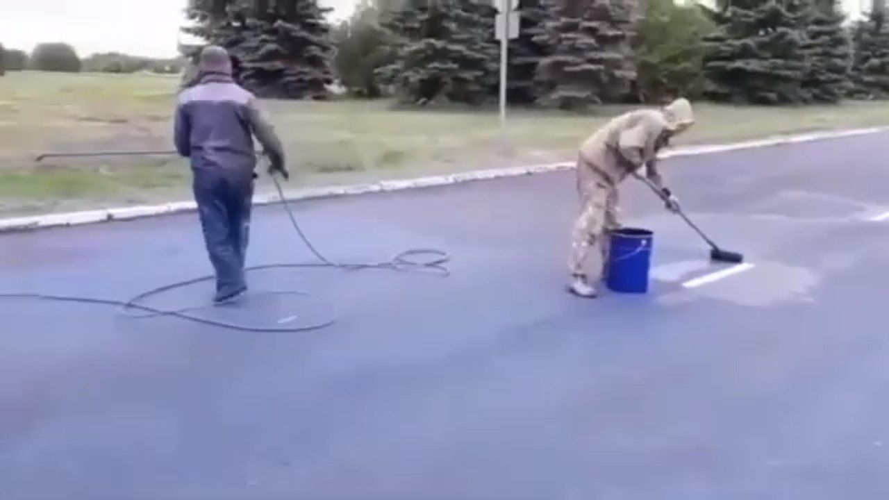 У завода КамАЗ в Набережных Челнах (Татарстан) рабочие решили покрасить асфальт в синий цвет. Видео появилось на YouTube-канале «Челны Life».