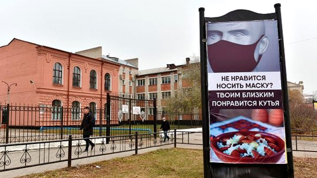 На баннерах разместили надписи для воздействия на горожан: «Не нравится носить маску? Твоим близким понравится кутья», «Социальная дистанция — 1 метр. Выбор за тобой». Плакаты сопровождаются фотографиями могильных плит на кладбище и тарелки с кутьёй — традиционным блюдом для поминок в России.