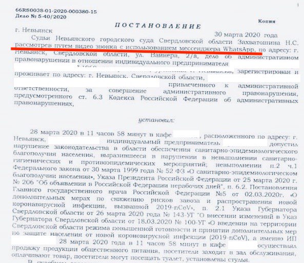 Cуд города Невьянска в Свердловской области впервые в истории российского правосудия рассмотрел дело по видеосвязи в мессенджере WhatsApp. Об этом сообщает ТАСС со ссылкой на главу правозащитной организации «Агора» Павла Чикова.