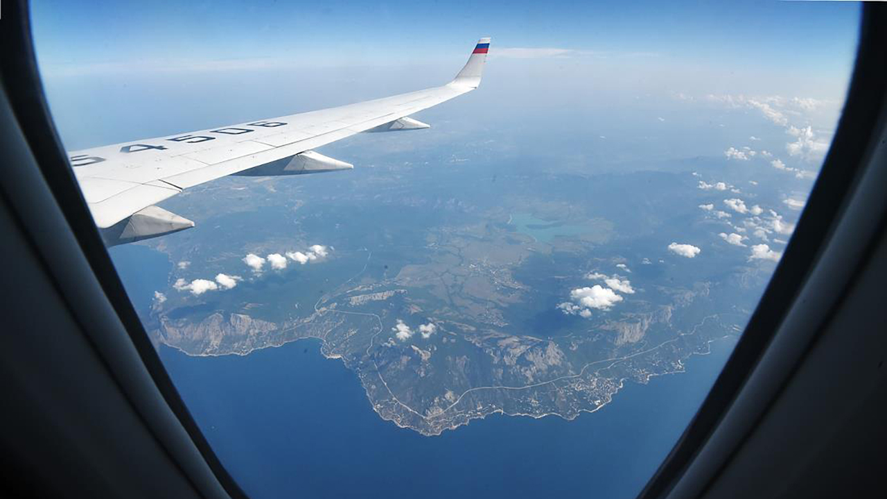 Крымское побережье из иллюминаторая самолета. Фото: Анатолий Жданов / «Коммерсантъ»