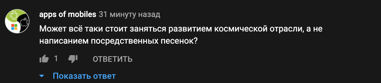 Каждая из песен за авторством Рогозина опубликована не только на сайте «Роскосмоса», но и на YouTube в формате нарезки кадров под музыку. Под роликами уже начали появляться первые комментарии пользователей, которые шутят про стихотворный талант главы госкорпорации и припоминают её неудачи в прошлом.