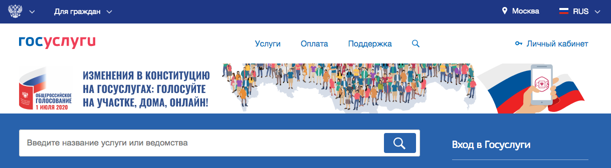 Сайт «Госуслуг» призывает жителей регионов голосовать за поправки к Конституции. Но не москвичей