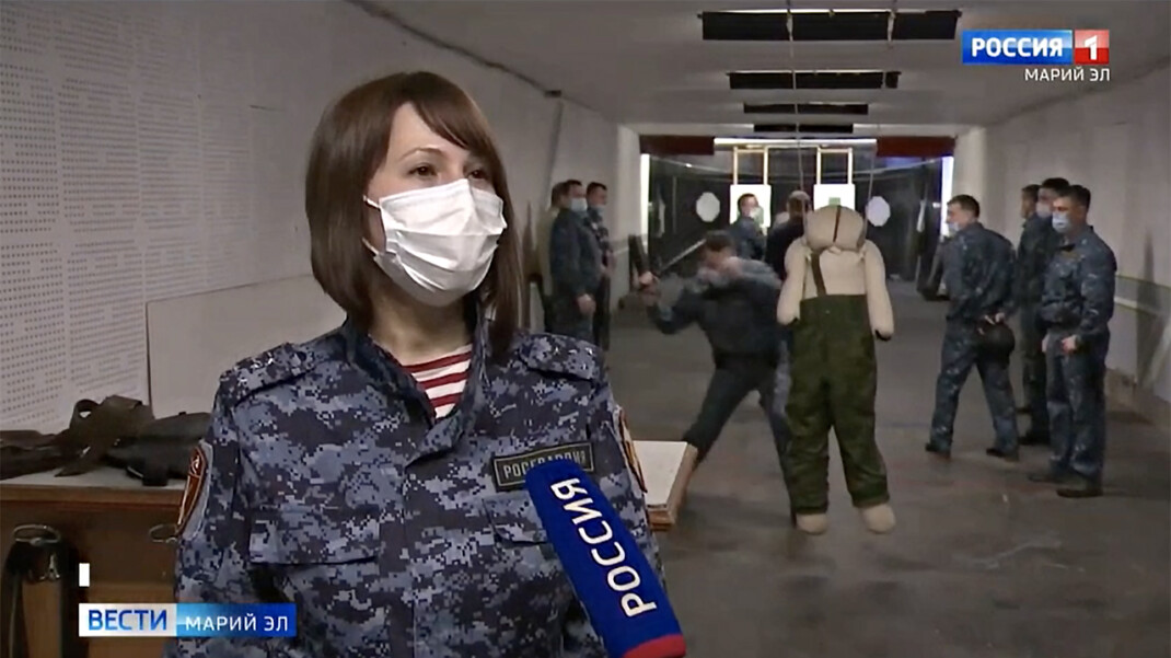 Сотрудница управления Росгвардии Алия Кленчива из Йошкар-Олы рассказала в эфире местного ГТРК «Марий Эл», что выбрала профессию, поскольку всегда мечтала «работать с людьми». На заднем плане при этом было показано, как силовики бьют манекен дубинкой, обратил внимание Telegram-канал «Расстрига».