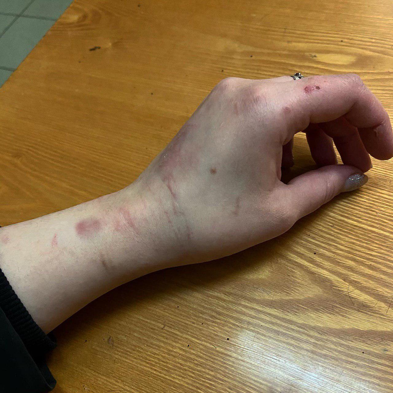Девушка также опубликовала фотографию с порезами и следами на руках от наручников. Около 2:30 ночи её отпустили из отделения без составления протокола.