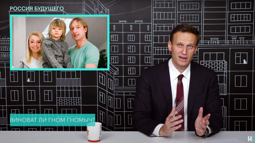 Навальный написал комментарий под видео, где назвал его «постыдной и бессовестной эксплуатацией» и пожалел сына Плющенко по прозвищу Гном Гномыч: «Несчастный ребёнок, которому достались алчные и бессовестные родители».