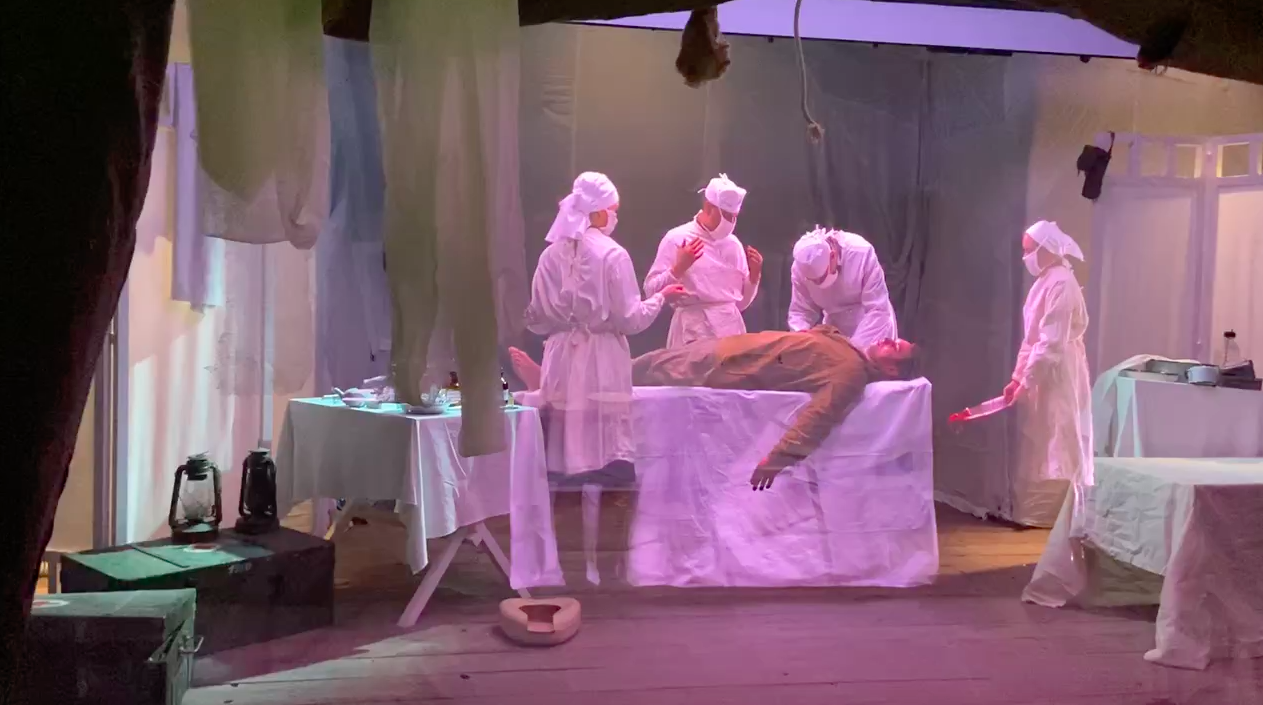 Самое большое впечатление в музее — графика. Вокруг всё горит, взрываются бомбы, летят самолёты, а в полевом госпитале бойцу при посетителях делают операцию. Но настоящее тут — только стол с хирургическими инструментами, врачи и раненый — проекция на декорациях. В другом зале воссоздан дворик, среди которого возникают голограммы рассказчиков. Появляется, например, девушка в шинели с автоматом и рассказывает, как её еле успели довезти до госпиталя: спасли только черви в ране — не дали ей сгнить.