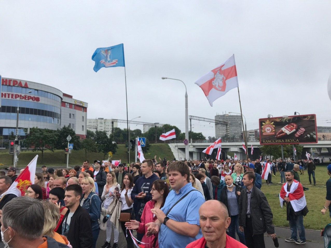 Новая локация была примерно в двух километрах от площади Независимости, и требующие перемен люди пошли туда. Очень многие ожидали, что именно там лидеры Координационного совета обратятся к людям. Настроение было приподнятое: уже было понятно, что на улицы вышли не меньше людей, чем неделю назад, а правоохранители по-прежнему боятся толпы.