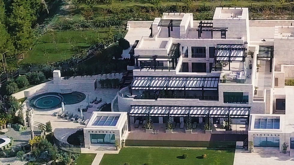 Площадь главного дома — из трёх надземных этажей и одного подземного, с бассейном на крыше и панорамными стеклянными стенами в сторону моря — 6 752 кв. м, чуть подальше расположено второе здание — «всего» 2 371 кв. м.