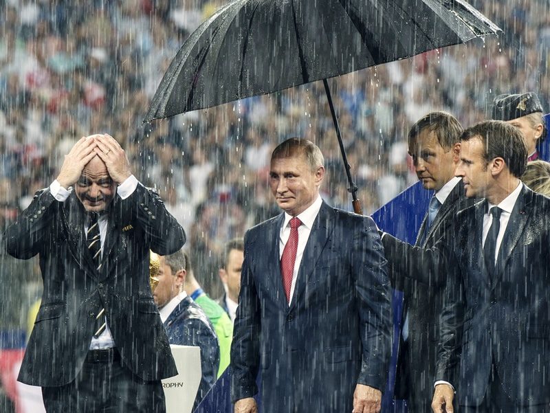 Путин, как и положено выходцу из спецслужб, в мировой политике видит только клубок заговоров, и постоянно действующую систему глобального вранья. Институты, договоренности, прочая мишура, — вроде маскировочной сетки, прикрывающей сложную конструкцию, выстроенную из больших и мелких обманов. Все друг другу врут, но делают при этом вид, будто друг другу верят, — это и есть политика. Никакой другой политики просто нет. И его претензии к «партнерам» — в том, что его из этой системы исключили. Перестали делать вид, что верят ему, продолжая врать и ему, и себе. Ну, а чтобы понять, что на самом деле думает Путин об общем благе, достаточно вспомнить эпизод с зонтом на финале чемпионата мира по футболу.