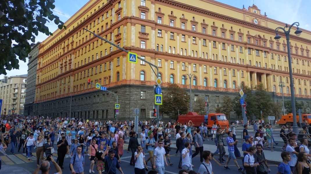 Несмотря на то, что силовики попытались заблокировать подступы к московской мэрии, сотням людей все же удалось прорваться на Тверскую улицу и скандировать «Допускай!» на акции в поддержку незарегистрированных кандидатов в депутаты Мосгордумы. «Зачищаем перед Долгоруким!», — отвечали им на это полицейские начальники, передавая команды подчиненным задерживать тех, кто собрался перед памятником основателю Москвы.
