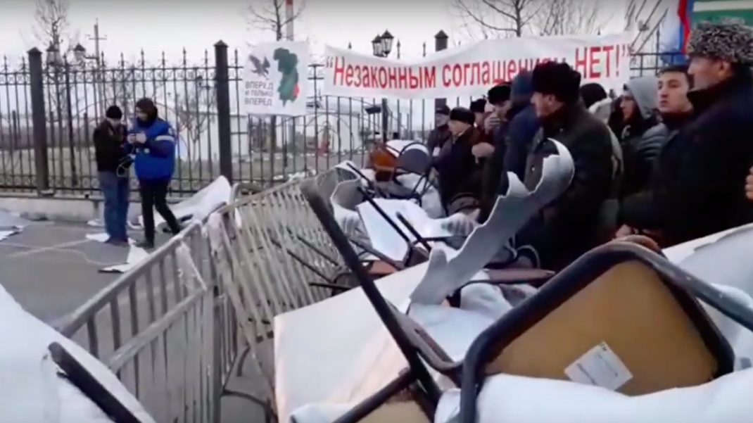 Накануне, 26 марта жители Ингушетии возобновили массовые протесты в Магасе с требованием отставки главы региона Юнус-Бека Евкурова. Активисты выразили недовольство законопроектом о необязательности проведения референдумов в Ингушетии об изменении границ или переименовании объектов. Они посчитали, что он не учитывает их требования — если он будет принят, считают в республике, то менять ее границы можно без учета мнения граждан. После давления оппозиции глава республики Юнус-Бек Евкуров отозвал законопроект из Народного собрания якобы для внесения изменений. Но организаторы митинга в Магасе уверены, что это уловка. По разным оценкам, акция собрала от 10 до 30 тысяч человек, активисты рассказывали о массовых отключениях мобильного интернета в регионе. Митинг поддержали в Москве и Санкт-Петербурге, там активисты устроили одиночные пикеты с лозунгами за отставку Евкурова.