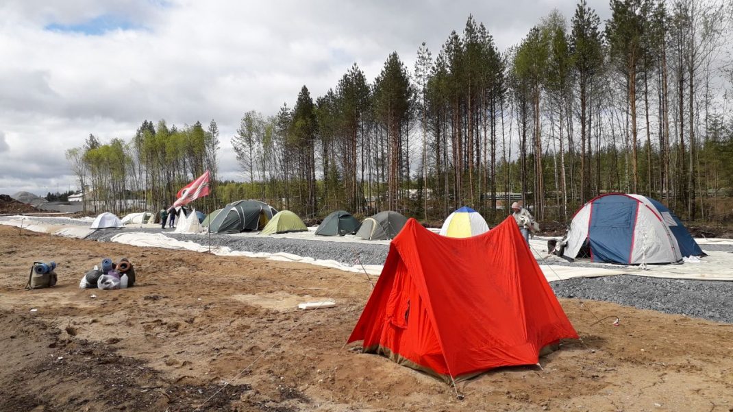 Палаточный лагерь активистов против мусорного полигона около станции Шиес