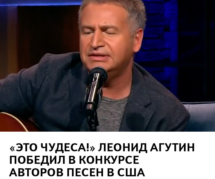 «Вот те на! Американская песня года у нас!» — написал Леонид Агутин о своей победе на международном конкурсе Songwriting Competition. Его песню жюри признало лучшей в номинации «Музыка мира». В этом году Агутин претендует ещё и на пять «Грэмми» сразу